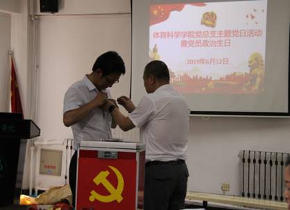 座谈之后,周莹院长作为老党员代表为即将转正的宋正学同志佩戴党员徽章。新老党员的交汇象征着qm球盟会源源不断发展的生命力,象征着体育人薪火相传,担当时代使命。