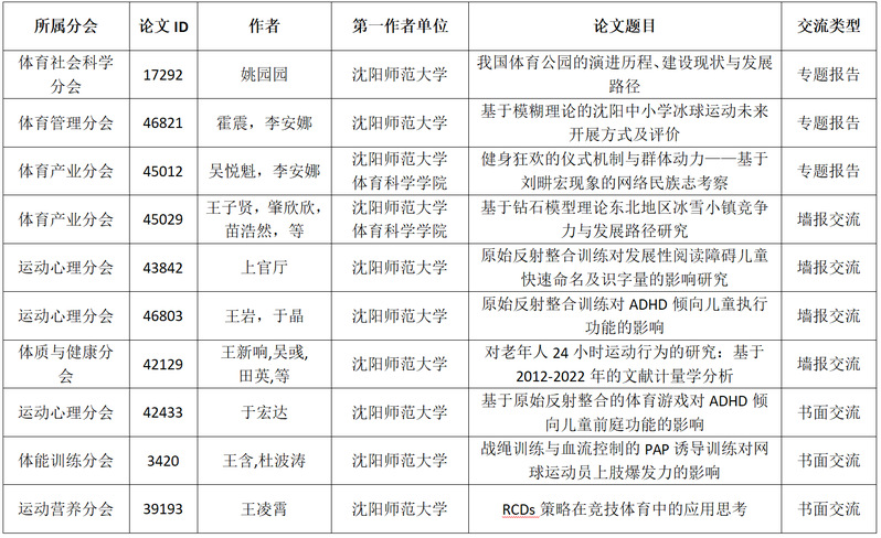 球盟会研究生学术论文被第十三届全国体育科学大会录取结果