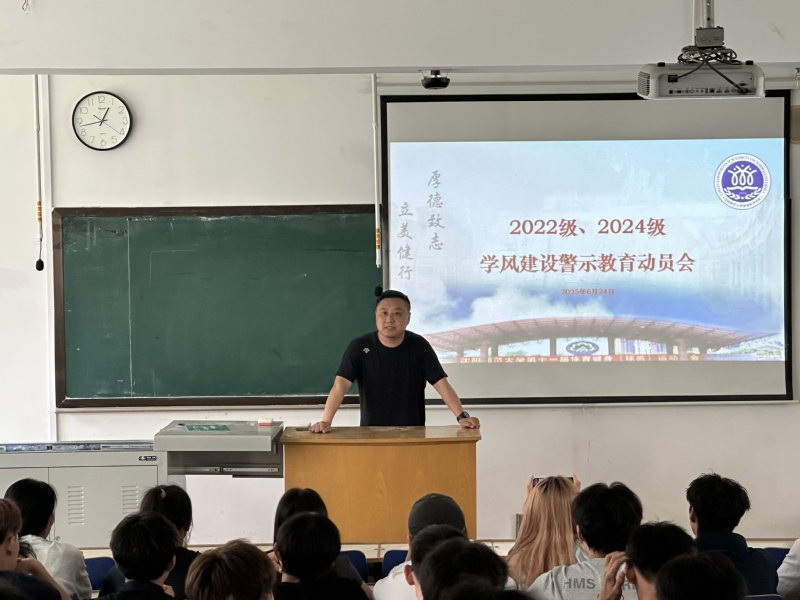 会上,刘洋老师结合校纪校规,深入剖析了作弊行为在学业、个人声誉及未来发展等方面造成的严重危害与不良后果,再次重申学院对考试舞弊“零容忍”的坚决态度,要求全体学生端正考试态度,以诚信为基石,共同维护公平公正的考试环境。